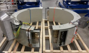 分體式過孔滑環(huán)可以有幾米的直徑。滑環(huán)通常由2-4個部分組成,它們在現(xiàn)場連接在一起??讖捷^大,應(yīng)用于散裝物料處理設(shè)備。