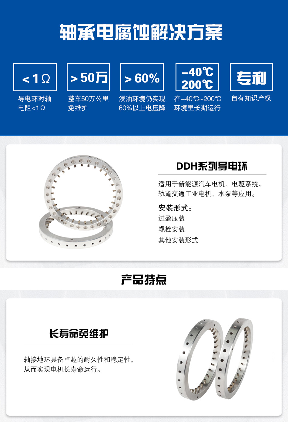 全盛機(jī)電DDH系列軸接地環(huán)由導(dǎo)電纖維和金屬體組成,用于變頻電機(jī)及其耦合設(shè)備的電腐蝕防護(hù),導(dǎo)電環(huán)可降低軸承與接地結(jié)構(gòu)之間的電勢感應(yīng),有效解決軸電流引起的電腐蝕現(xiàn)象,保護(hù)設(shè)備防止損壞。適用于新能源汽車電機(jī)、電驅(qū)系統(tǒng),軌道交通、工業(yè)電機(jī)、水泵等應(yīng)用。