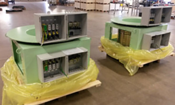 路數(shù):43 信號, 4+3 功率 電壓:230 V 信號, 690 V 電壓 電流:10A 信號, 40+100A 電路 尺寸 (mm):1000x1000x1200 孔徑 (mm):ø700 轉(zhuǎn)速:max. 25 rpm 可選項:速度、定位、監(jiān)控 |
