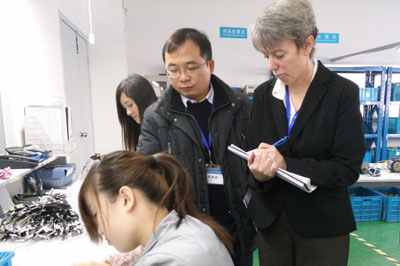 在品質(zhì)部經(jīng)理胡俊的陪同下,客戶參觀了各生產(chǎn)車(chē)間、倉(cāng)儲(chǔ)現(xiàn)場(chǎng)、辦公區(qū)域等。胡經(jīng)理認(rèn)真地向客戶介紹產(chǎn)品實(shí)現(xiàn)的每一道工序,并讓客戶親自動(dòng)手檢驗(yàn)。對(duì)關(guān)鍵過(guò)程尤為仔細(xì),查閱作業(yè)指導(dǎo)書(shū)、過(guò)程檢驗(yàn)記錄等??蛻粢卜浅UJ(rèn)真地向我們了解各種產(chǎn)品的性能和用途,不停的記錄,并連聲稱(chēng)贊“Very Good!”。