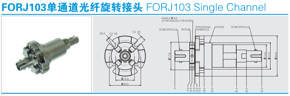 FORJ103光纖旋轉(zhuǎn)接頭用于單模或多模系統(tǒng)的光電旋轉(zhuǎn)連接;完全的雙向旋轉(zhuǎn);與現(xiàn)有的電氣滑環(huán)設(shè)計(jì)相融合;全封閉結(jié)構(gòu);能為客戶量身定制所需要的光纖滑環(huán)